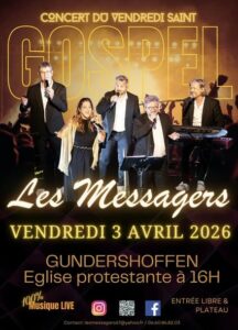 Le groupe de musique « Les Messagers » se produira dans l’église protestante de Gundershoffen à 16h pour son traditionnel concert du Vendredi Saint..