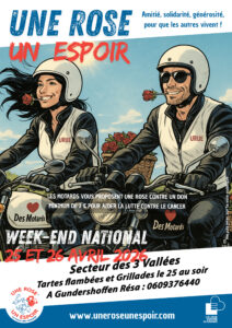 Les motards de l’association vous proposeront une rose (porte à porte) en échange d’un don minimum de 2€ au profit de la ligue contre le cancer.