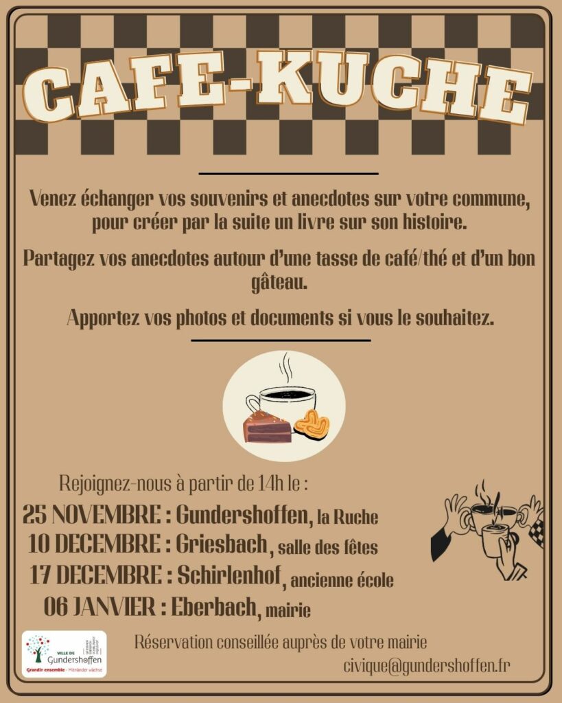 Les Cafés Kuche ont lieu à partir de 14h. D’autres réunions sont prévues en 2026.