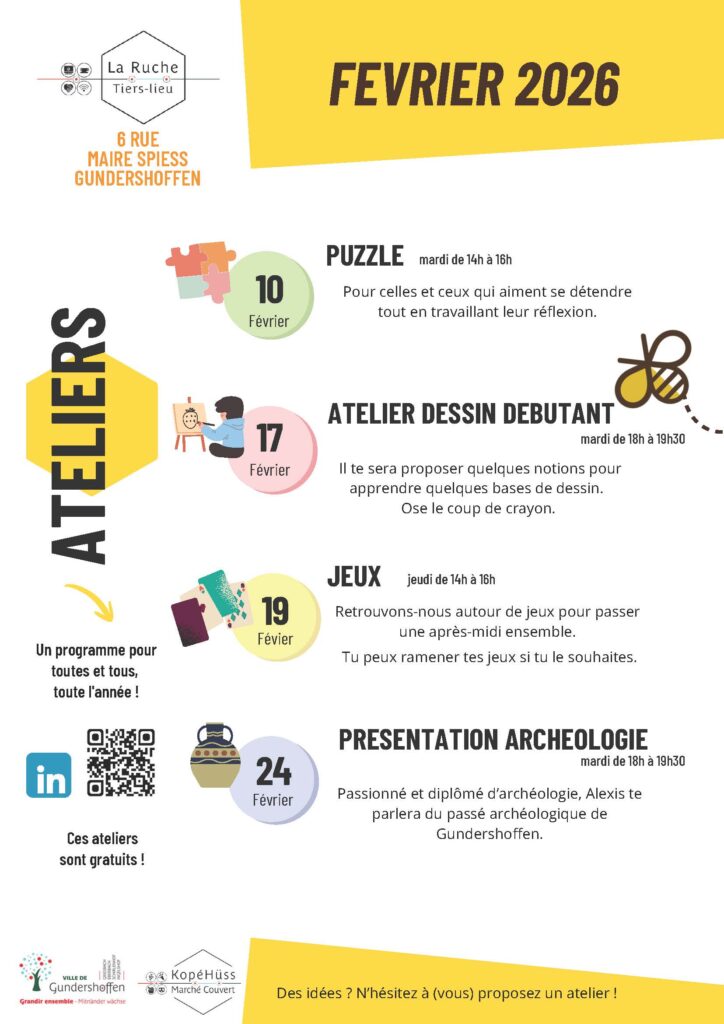 Voici le programme des animations qui se dérouleront en février dans notre tiers-lieu La Ruche.